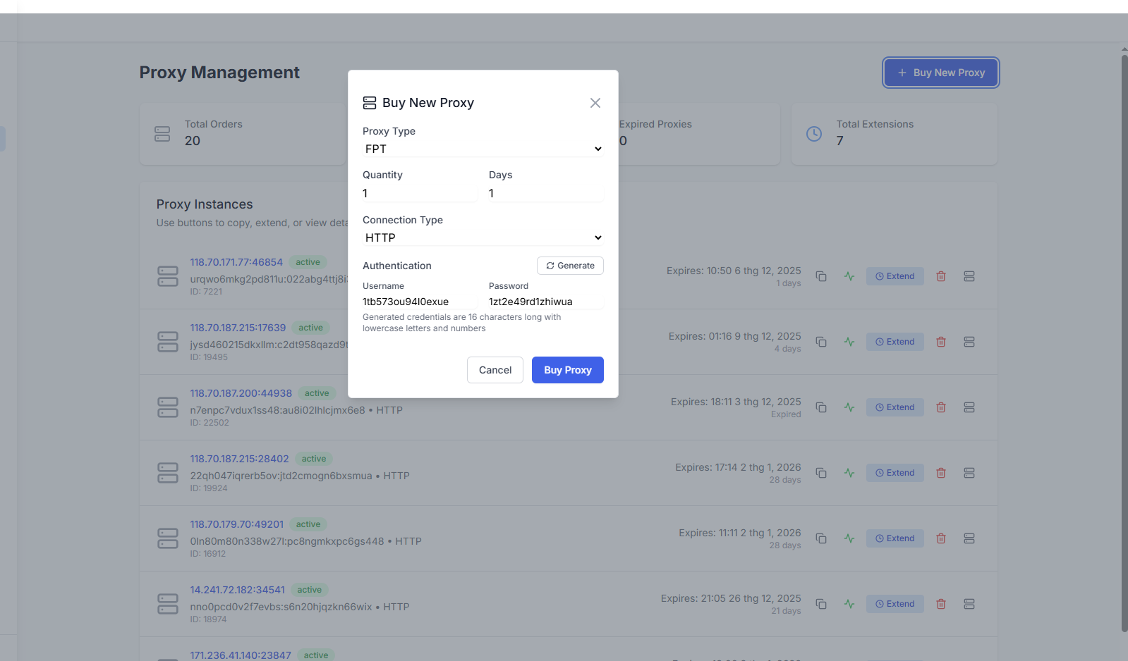 Managed and orchestrated complex downstream processes, including multi proxy-acc-auto upload social tasks to platforms like YouTube, Facebook, and TikTok. Proxy management capabilities were integrated to handle these operations, enabling native buy, manage, and extend proxies directly within the platform.